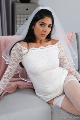 The gorgeous Jasmine A is featured in this free gallery from OnlyTease today looking quite stunning as a beautiful bride. She is wearing a white minidress with high heels and sheer white stockings on those sexy legs of hers. Jasmine kneels on the couch and pulls up her dress, showing the top of her stay up stockings as well as that cute ass of hers. When the dress comes off we get to check out her breasts and her white panties, which she also removes before the end of her photo shoot. Enjoy the free gallery and for more beautiful models in sexy outfits and stockings, click HERE for instant access to OnlyTease!